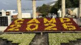 日本ハムの一軍のキャンプ地の、タピックスタジアム名護では、日本ハムののぼりが風に揺られていました。