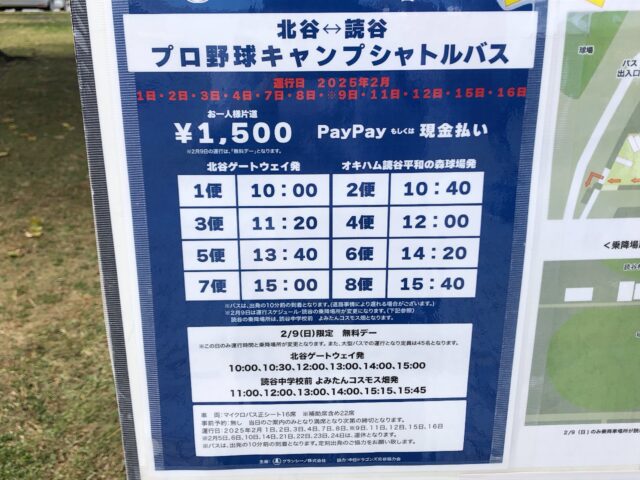 例年、キャンプ期間中には2つの球場を結ぶ専用シャトルバスが運行されます。